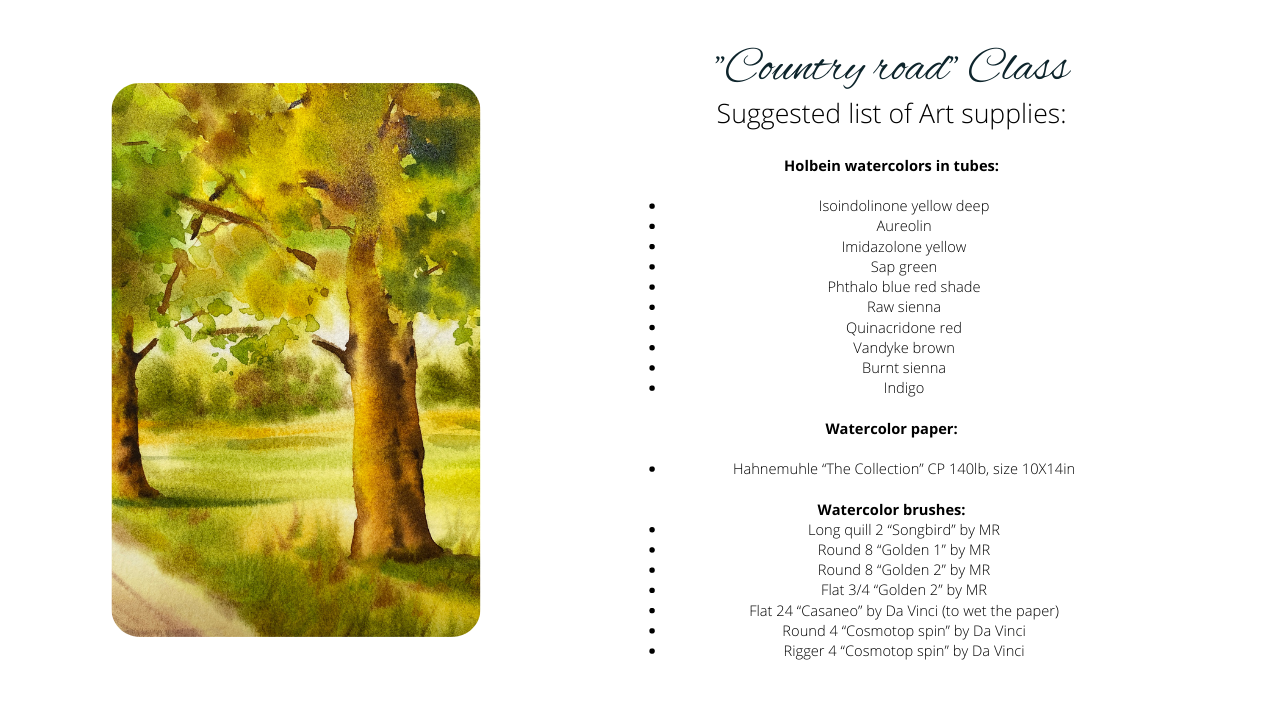 In this lecture, you will find a list of art supplies I used for this painting. Please do not worry about matching with any colors. What is more important are light and shadows, to create a nice balance in your painting.